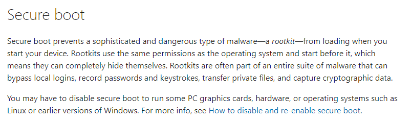 그래서 이번엔 Secure Boot 기능을 활성화한 뒤