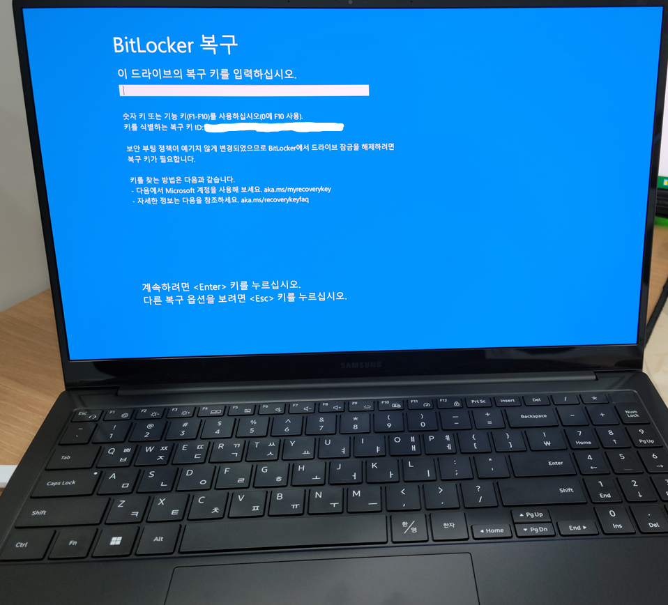 하지만 문제는 이 이후, 컴퓨터를 껐다 켜기만 하면 항상 BitLocker 복구를 요구해온다는 점이다..
