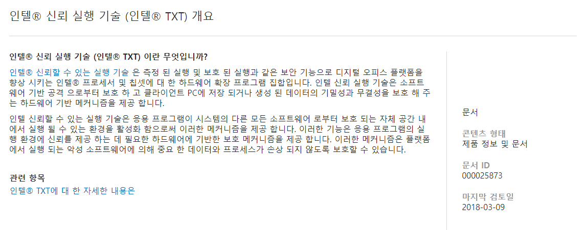 인텔® 신뢰 실행 기술 (인텔® TXT) 개요