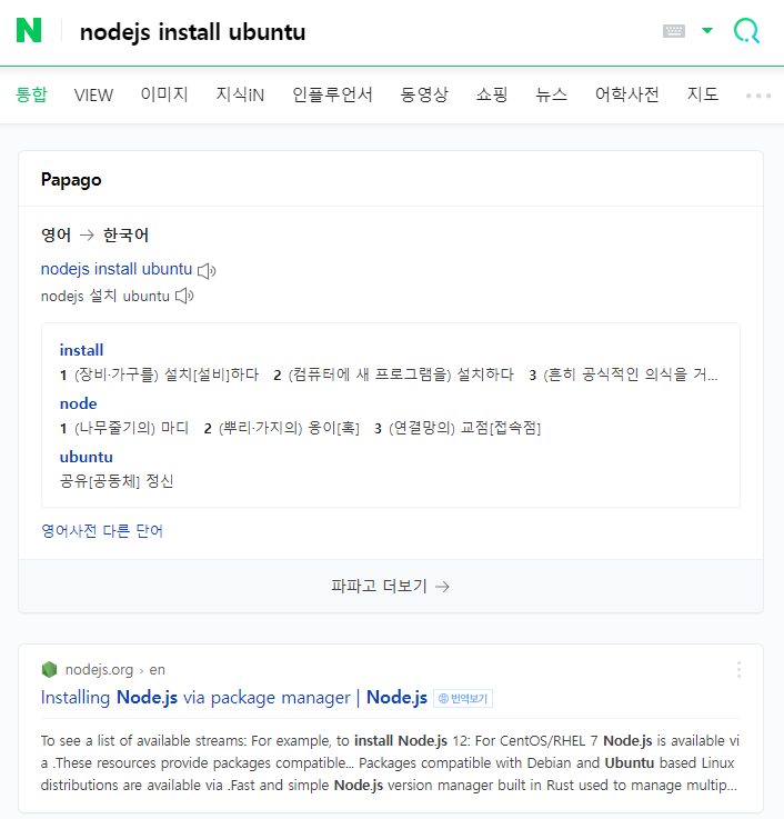 Nodejs를 설치하고 싶다면 NodeJS install ubuntu 를 검색하면 된다.