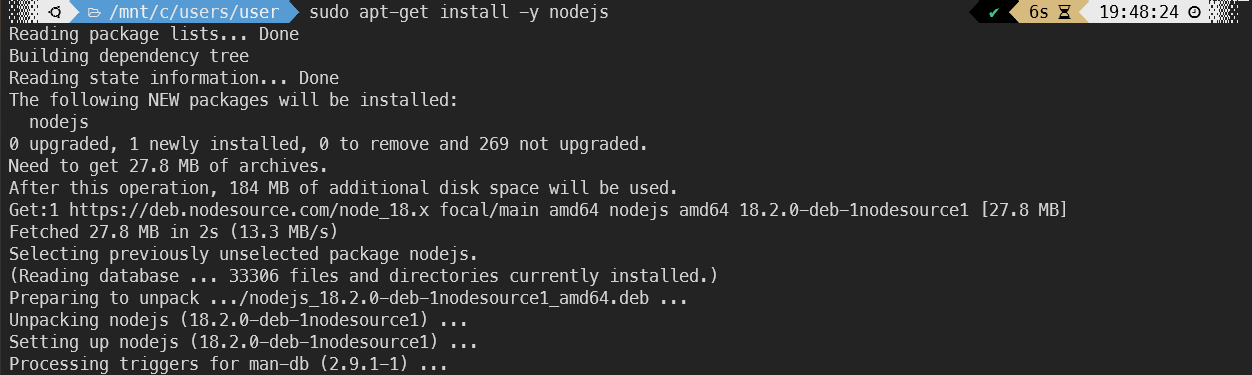 sudo apt-get install -y nodejs