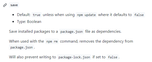 그러다보니 npm 5.0+ 버전부터는 --save 플래그를 더 이상 입력하지 않아도, 기본값으로 --save를 입력한 것과 같이 동작하도록 바뀌었다.
