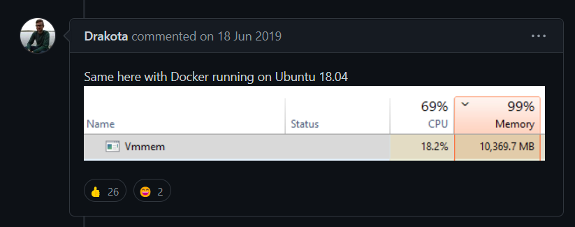 WSL 2 consumes massive amounts of RAM and doesn't return it · Issue #4166 · microsoft/WSL