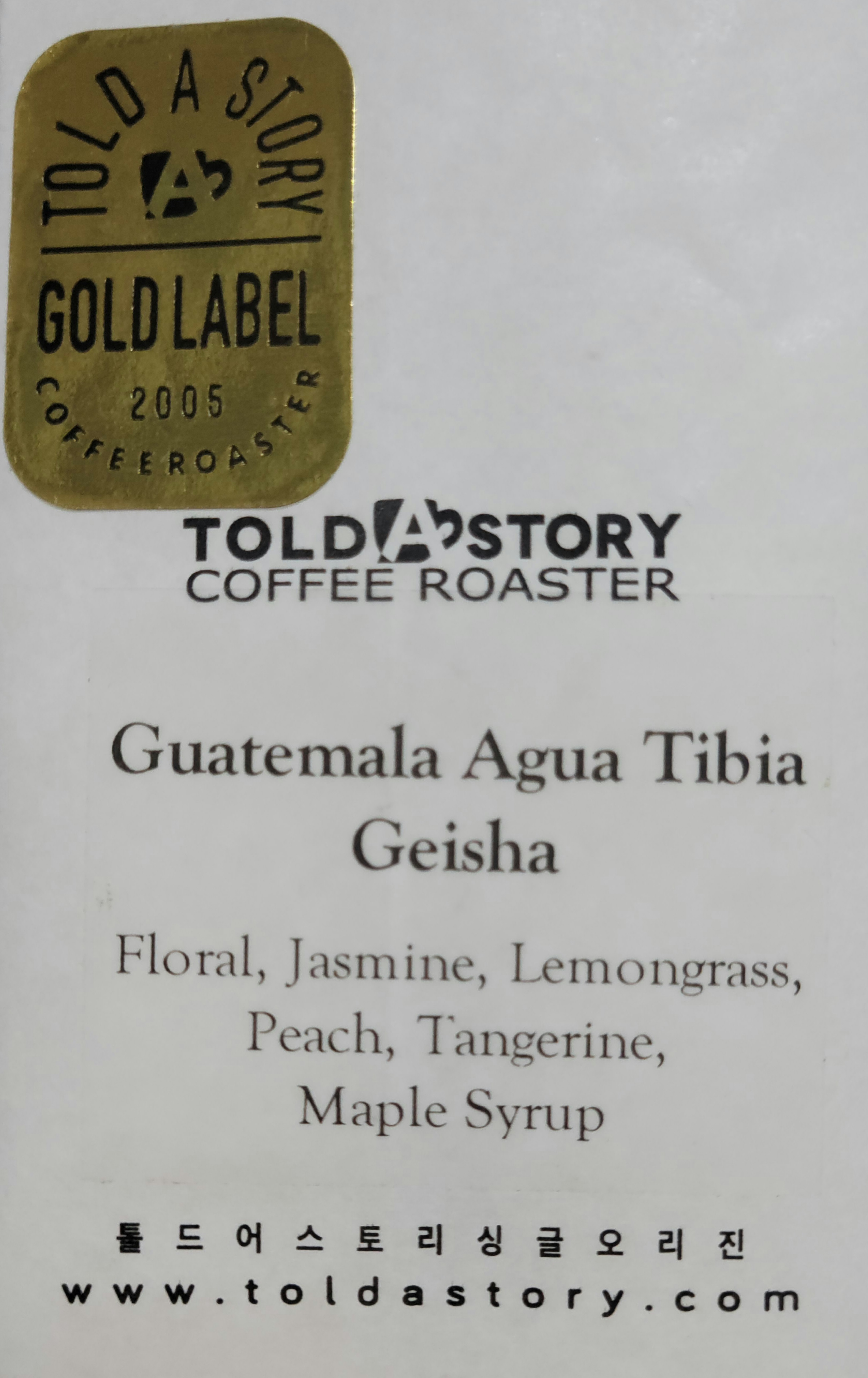 원두 : Guatemala Agua Tibia Geisha / 20g / PHAT 18틱