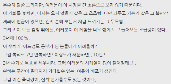 무수히 말씀드리지만, 여러분이 이 시장을 긴 흐름으로 보지 않기 때문이다.