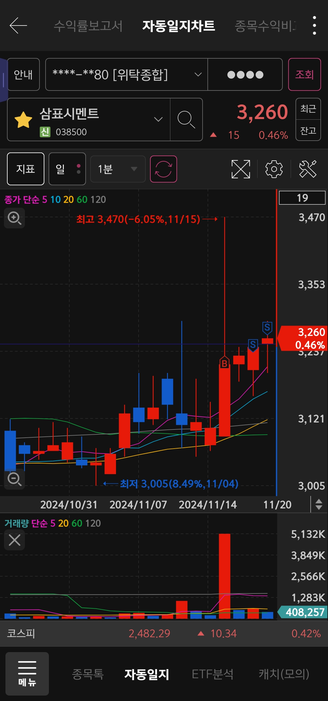 오늘 나타난 쌍끌이 매수를 보고 1:1 물타기를 했다.